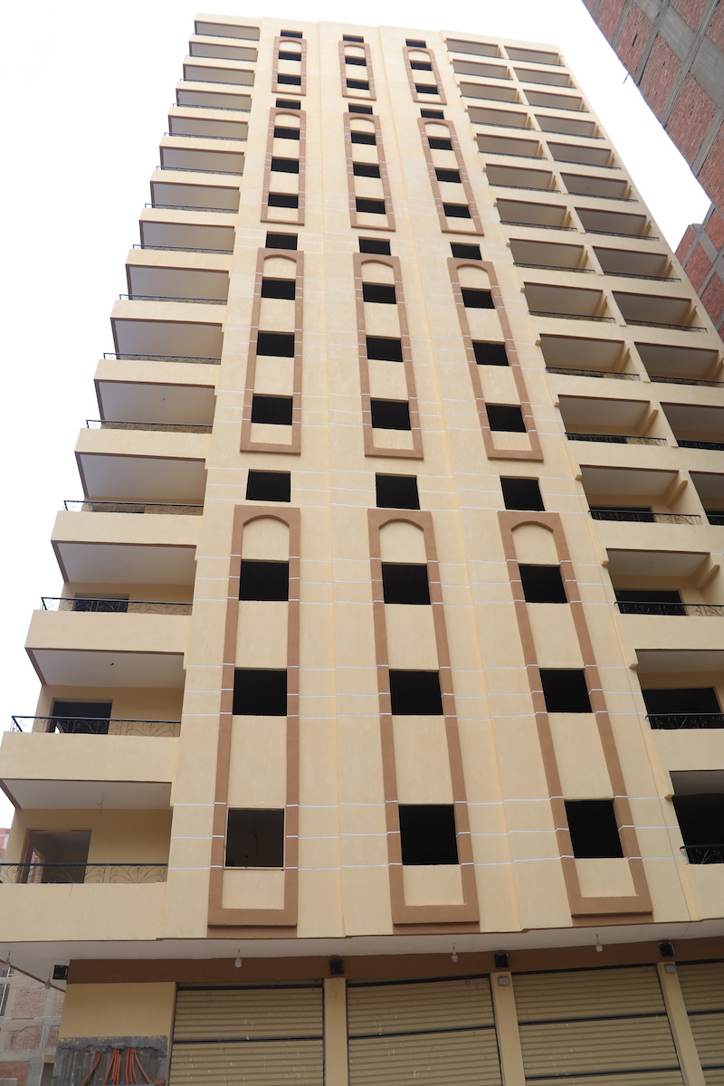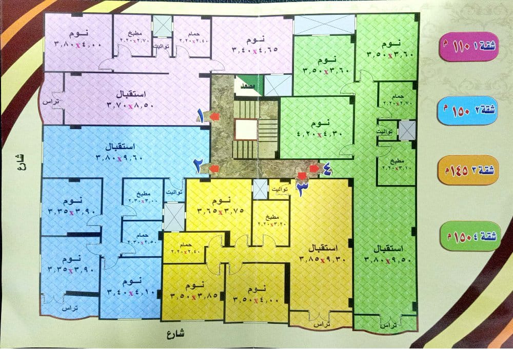 عدد الشقق : 60 شقة ( 4 وحدات بكل دور ).