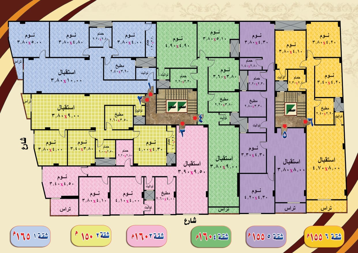 | 6 | التاسع | 155 م | 1,050,000 | 575,000 | 43,800 × 12 شهر |